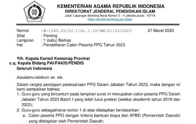 - Calon peserta PPG dengan kriteria bantuan biaya dari APBD (Pemerintah Daerah) yang ditetapkan oleh Pemerintah Daerah;